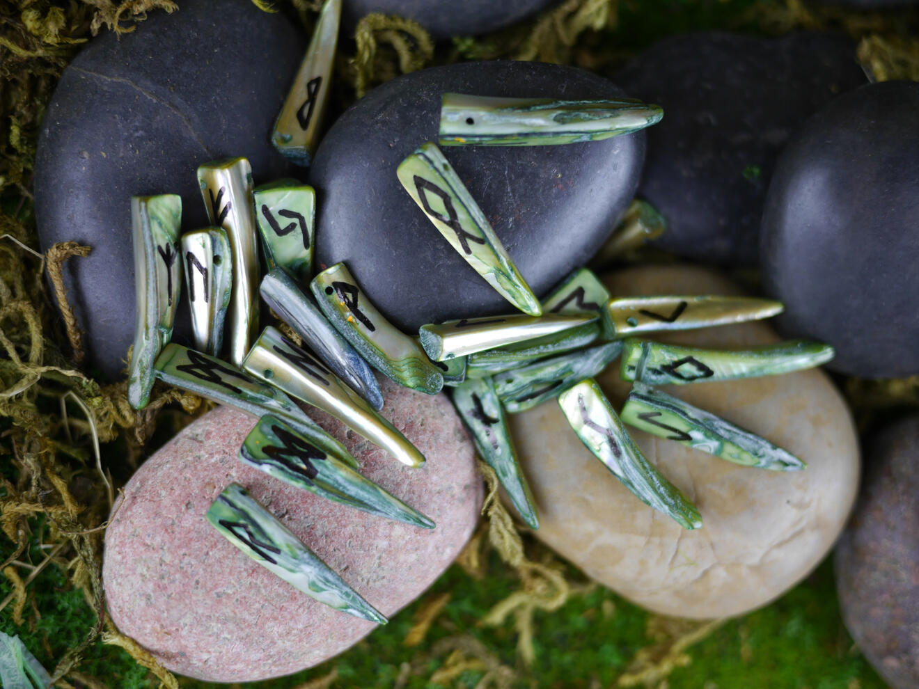Mother of Pearl Elder Futhark Runes Green