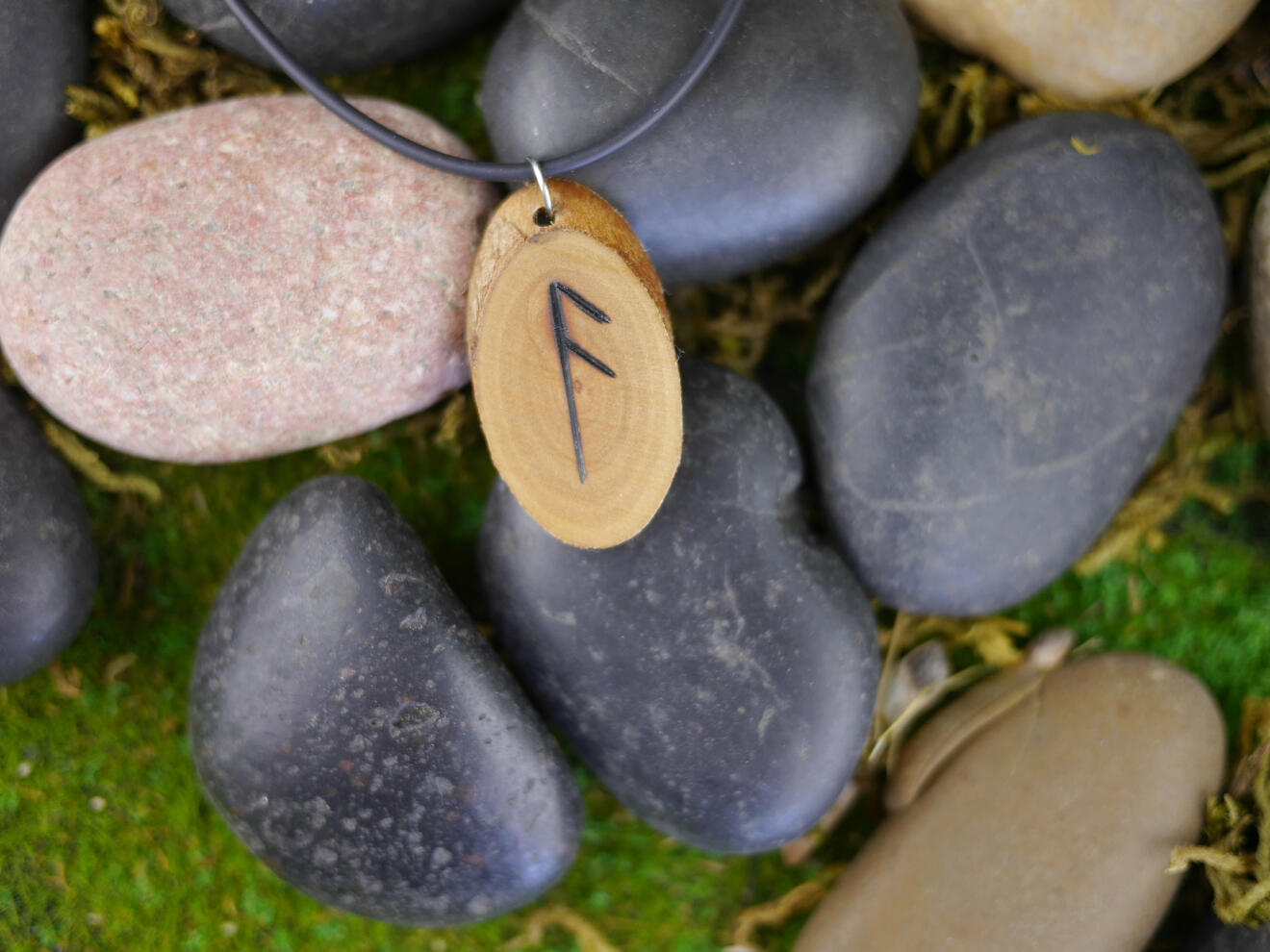 Wooden Fehu Rune Necklace