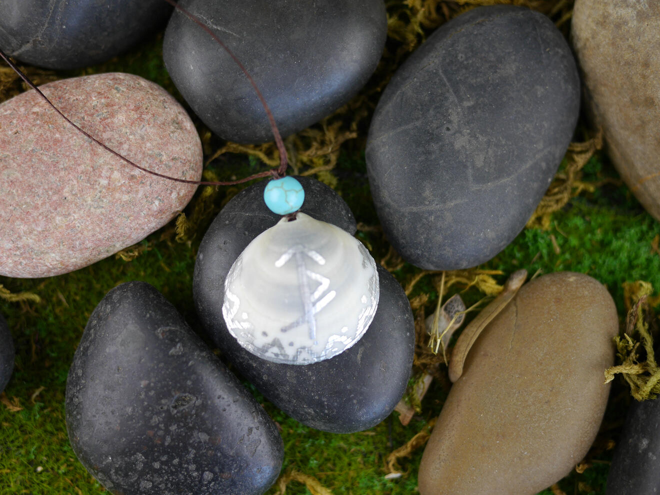 Seashell Elder Futhark Runes & Strength Bindrune Pendant